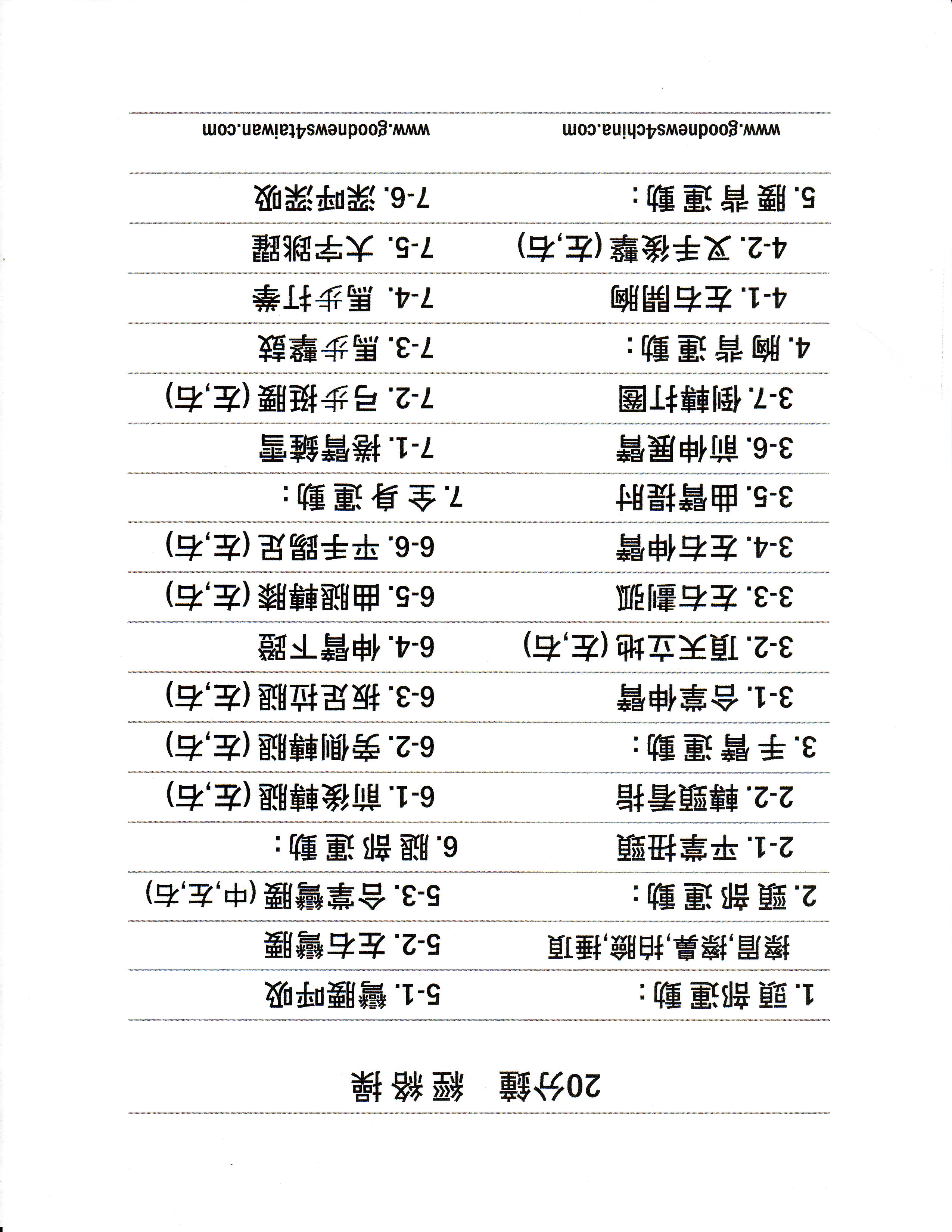 "20分鐘經絡操"的目錄打印下來,照單練習.